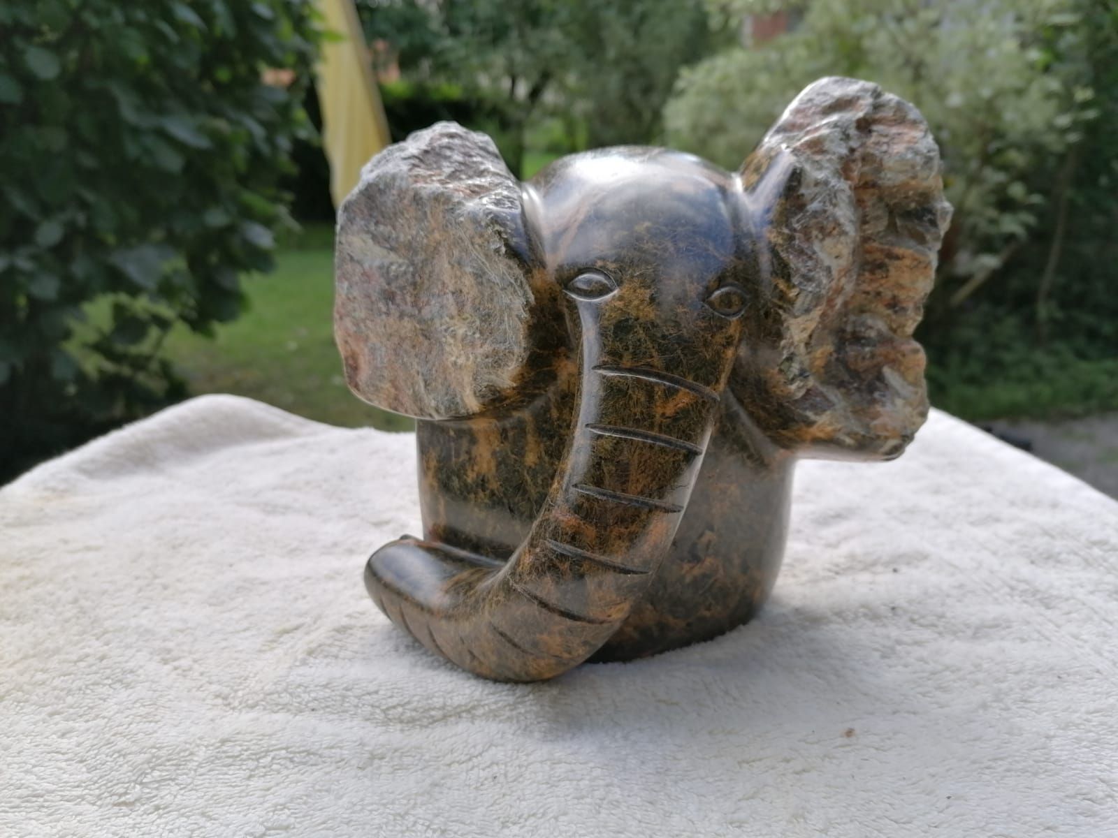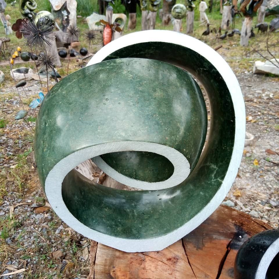 Der simbabwische Serpentinstein lässt sich aufgrund seiner Eigenschaften gut bearbeiten. Er ist härter als Speckstein und weicher als z.B. Marmor und hat eine stabile Struktur und Farbvielfalt. Es gibt ihn in schwarz, verschiedenen Grüntönen, braun, weiß, sogar lila und türkis. Die Farbe kommt am Ende des Prozesses zum Vorschein durch feines Schleifen und nach Wunsch durch Wachsversiegelung.